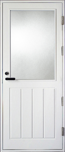Ovilevy | EPS-lämpöeristetty 62 mm vahva ovilehti. Ovilevyn reunalla liimapuun ja kertopuun yhdistelmä sekä molemmat oven pinnat on alumiinilevyin vahvistettu. Oven pinta säänkestävä HDF-pinta valkoinen NCS S 0502-Y. Ulkopuolella urakuviointi ja sisäpuolelta sileä.
