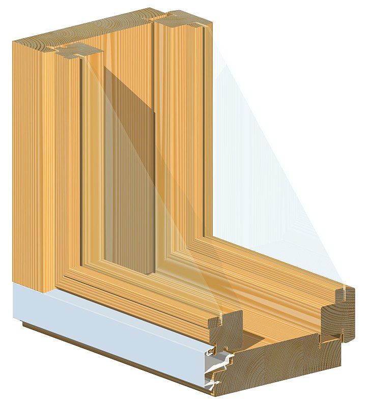 Sisäänpäin aukeava kaksipuitteinen puuikkuna.