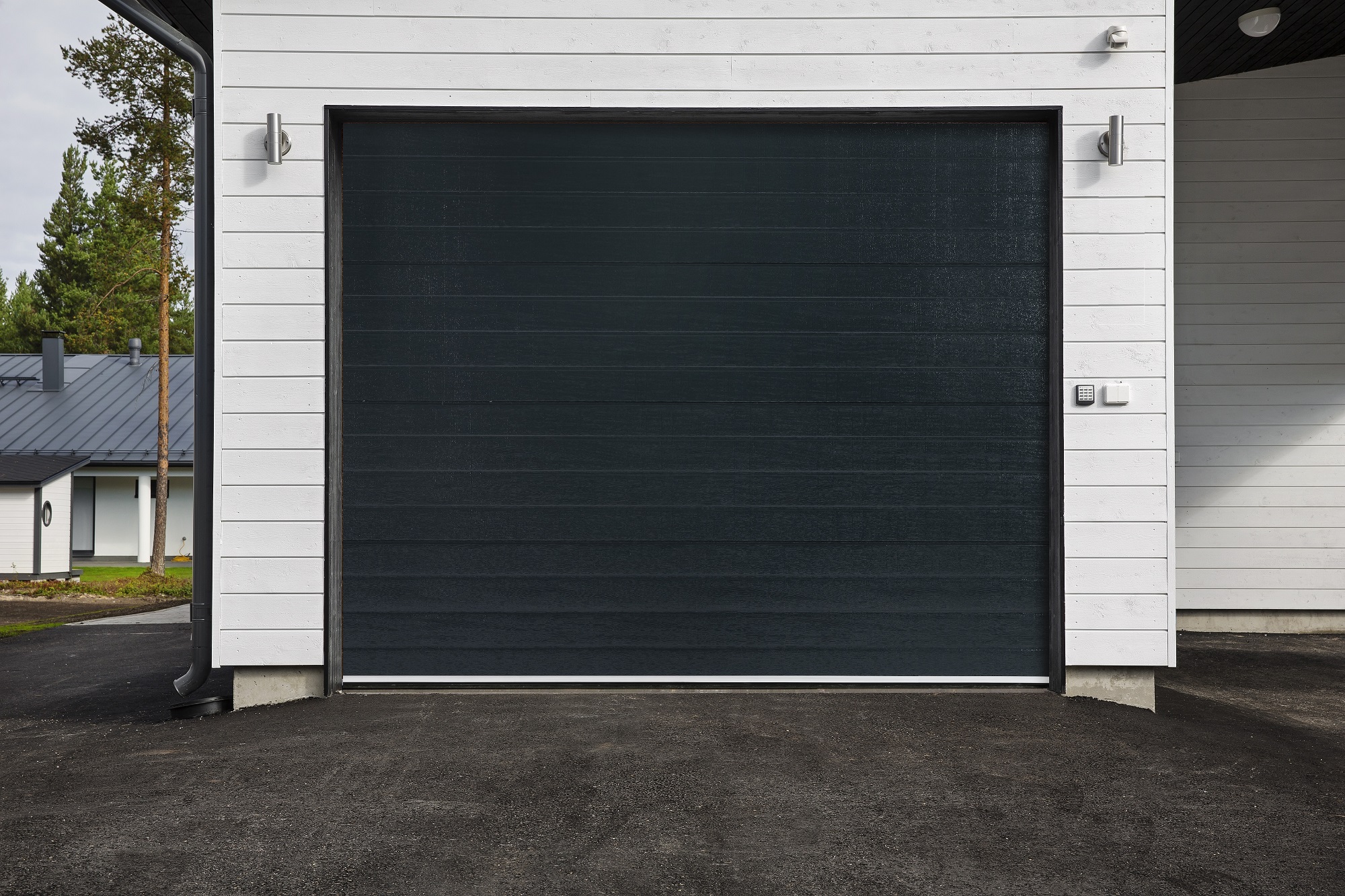 Turner 210 tummanharmaa autotallin nosto-ovi avaajalla, 25x21