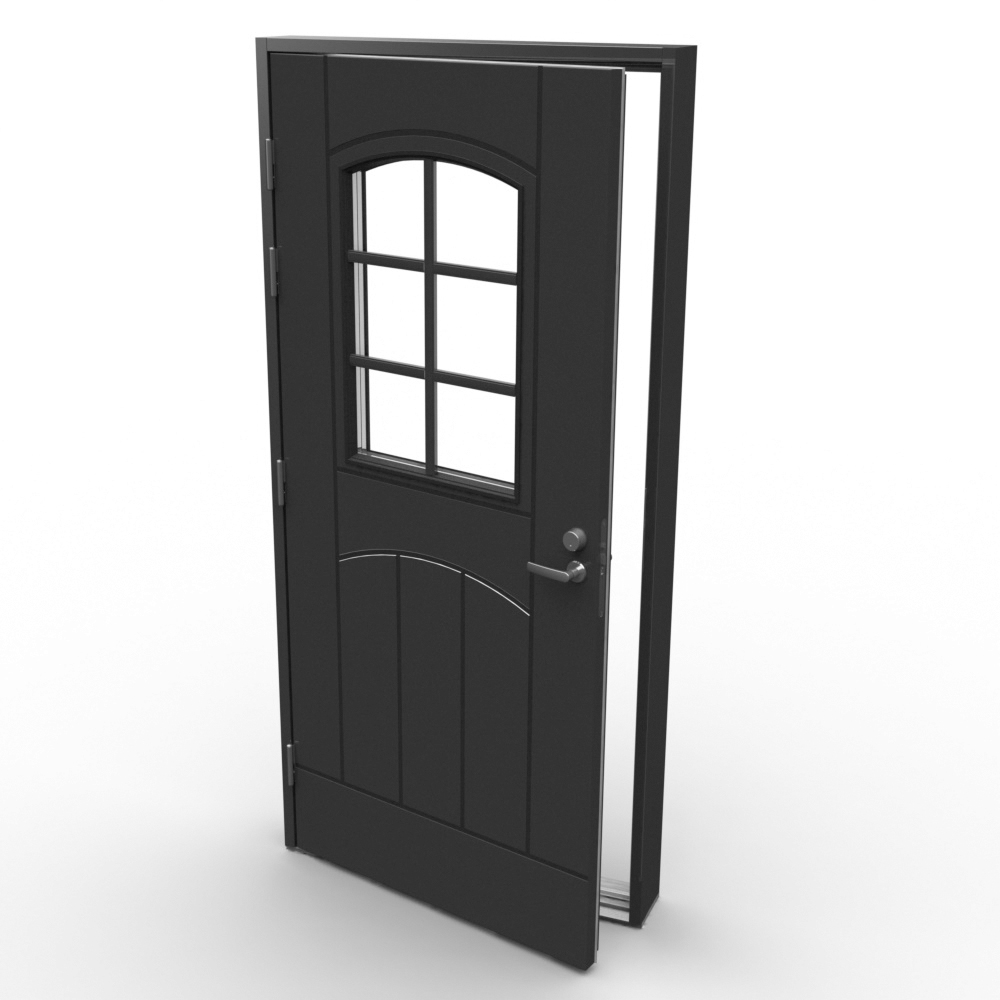 1-lehtinen, ulosaukeava levyrakenteinen ulko-ovi.