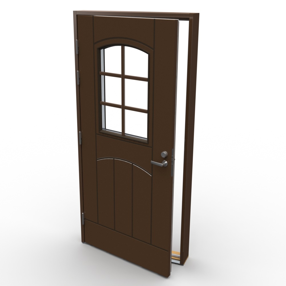 Rakenne: 1-lehtinen, ulospäin aukeava levyrakenteinen ulko-ovi.